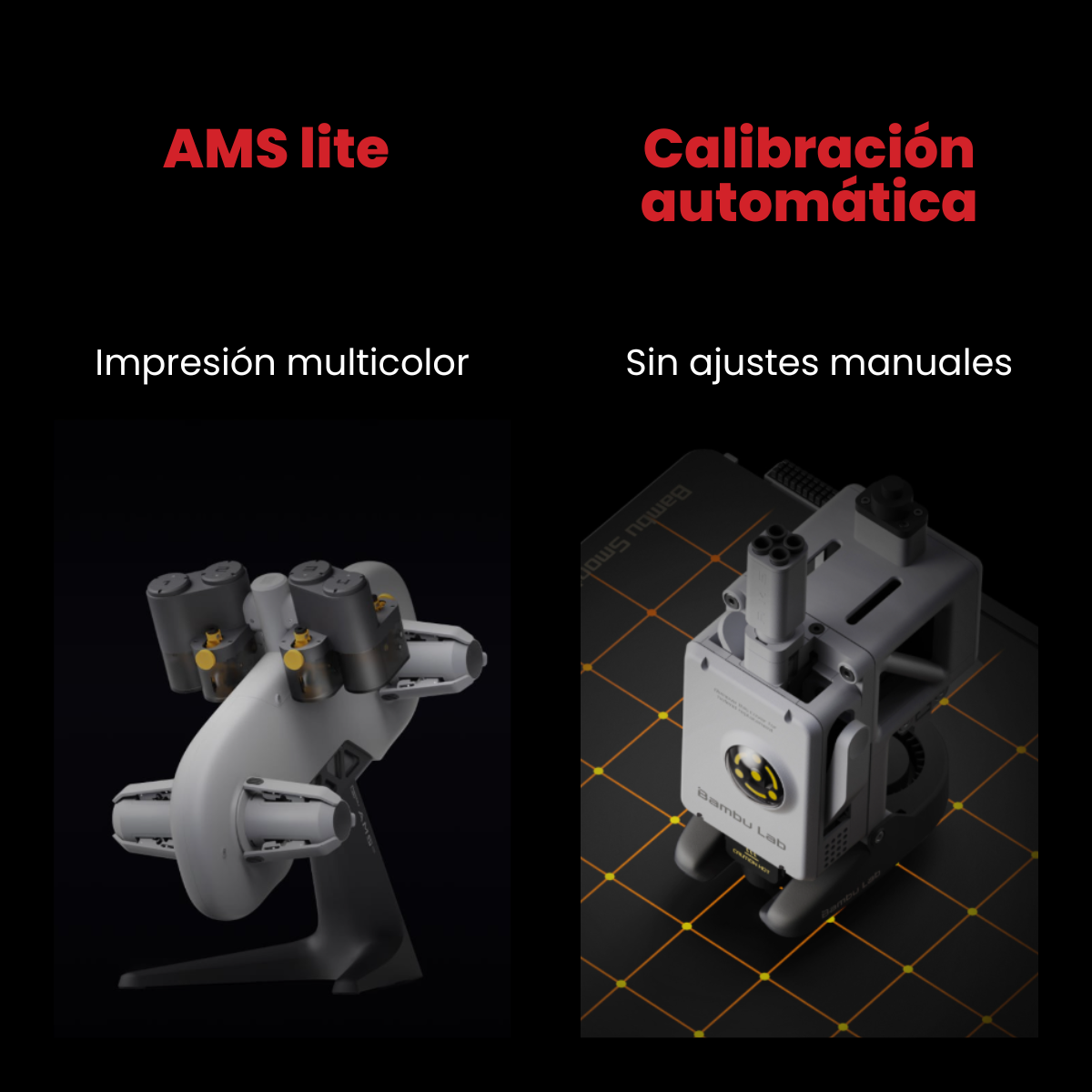 ⚠ IMPORTANTE: El AMS Lite incluido puede enviarse en una caja separada de la impresora según disponibilidad. Todos los AMS son 100% originales con garantía oficial Bambu Lab.
