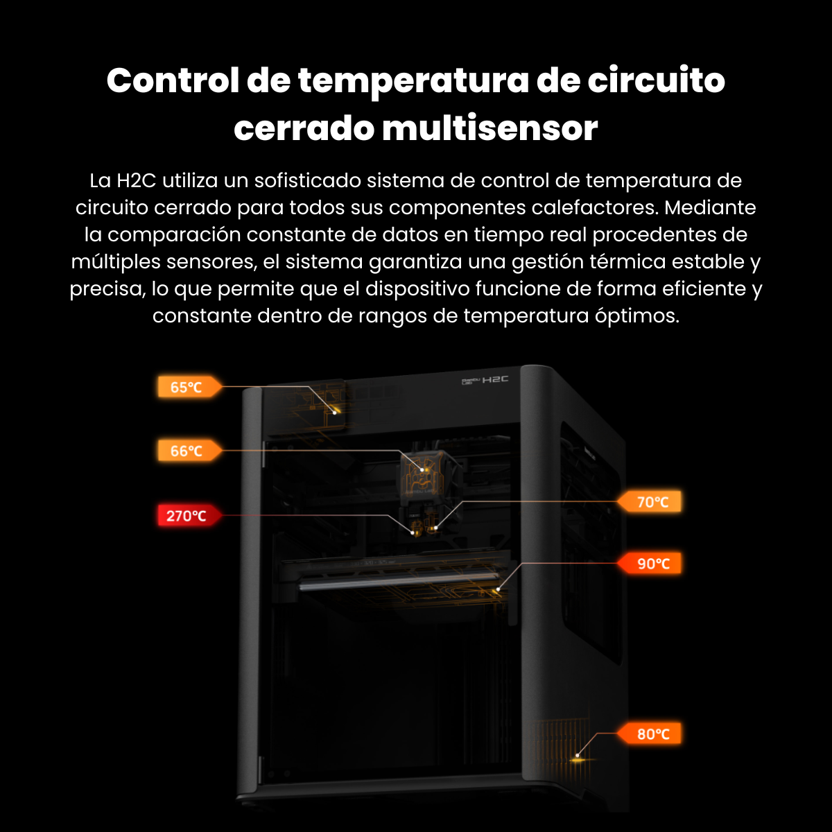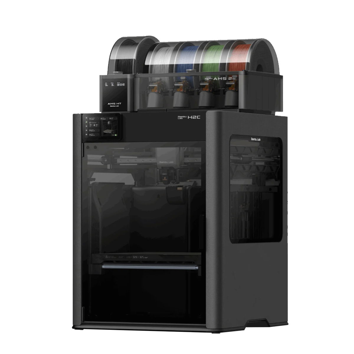 La H2C AMS Combo de Bambu Lab combina impresión multimaterial y multicolor dentro de un flujo completamente automatizado y confiable. Gracias al Vortek Hotend con calentamiento por inducción, los cambios de hotend y material son más rápidos, con menos purga y mayor estabilidad dimensional.