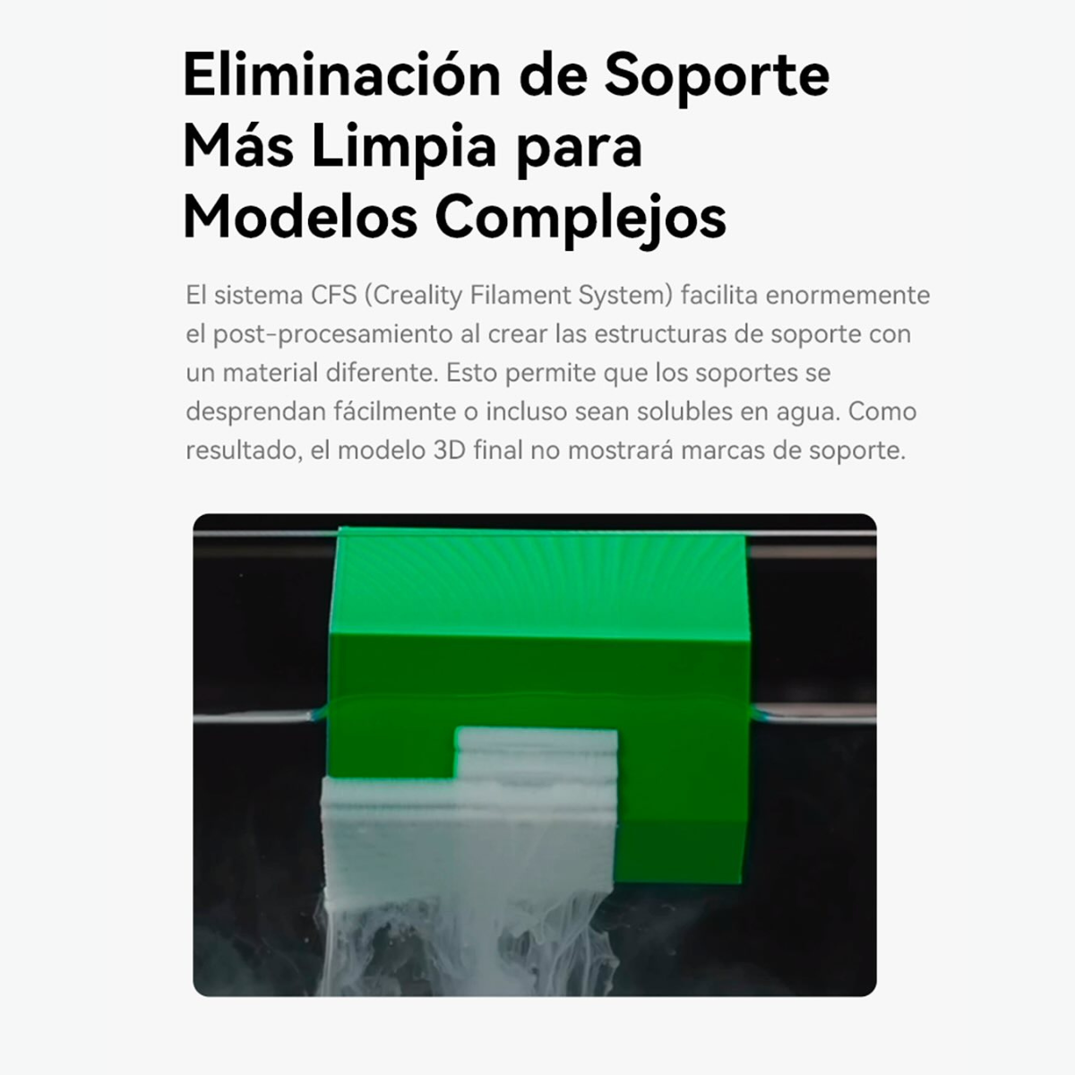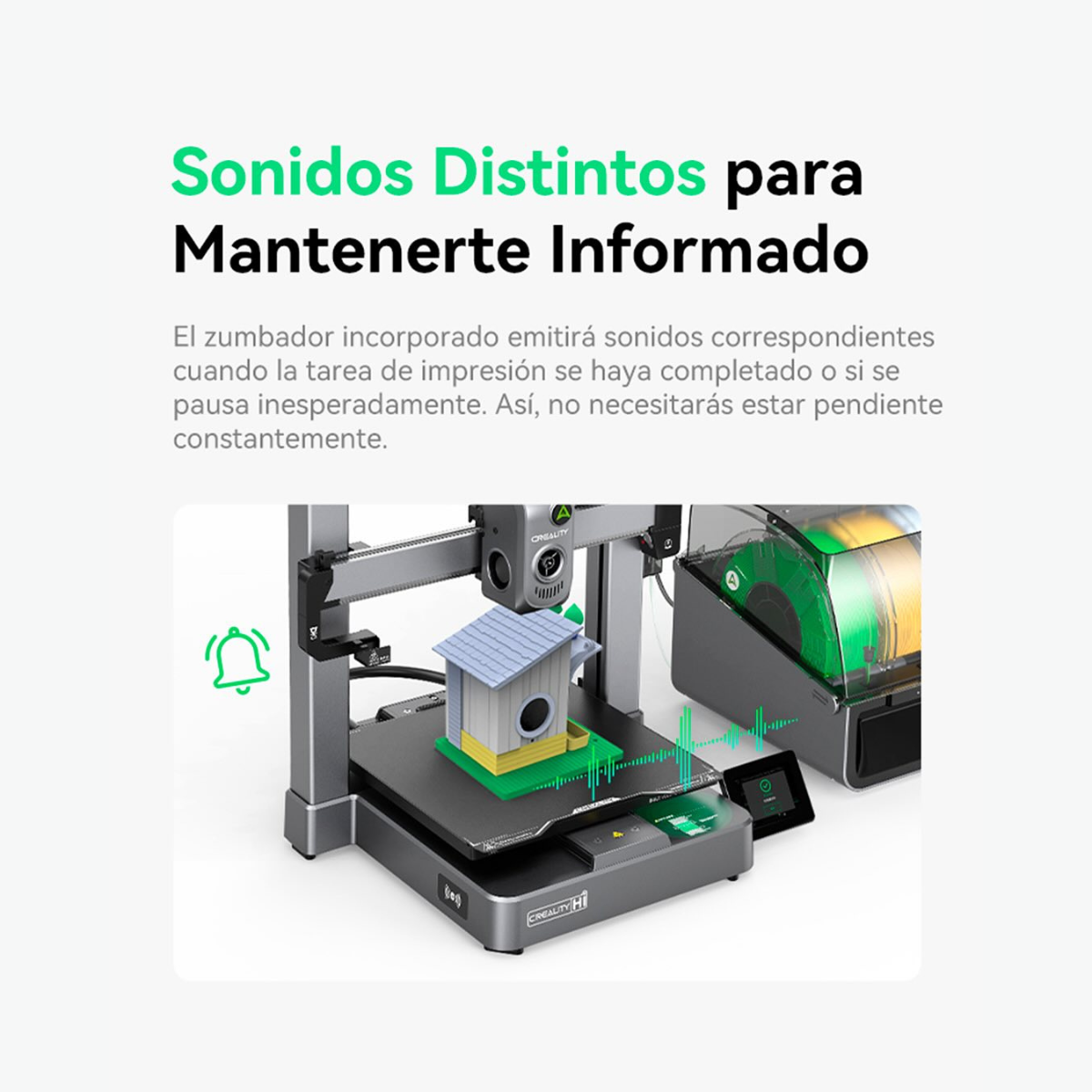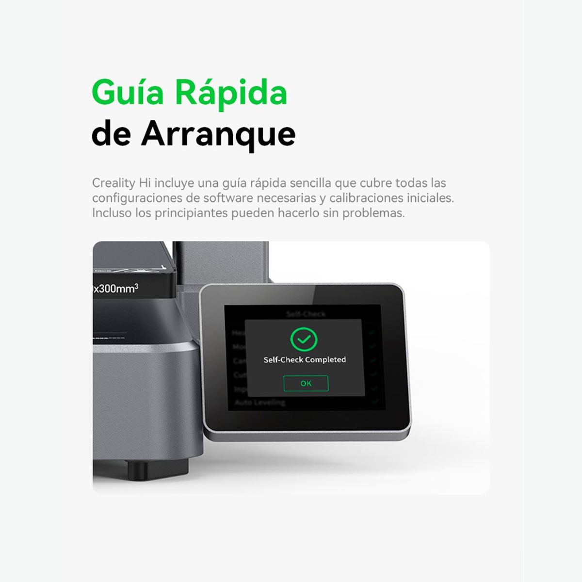 La Creality Hi es una impresora 3D FDM potente, silenciosa y fácil de usar, ideal tanto para principiantes como para usuarios avanzados. Gracias al sistema CFS Inteligente, permite imprimir hasta 16 colores (con 4 CFS, incluye 1), eliminando retoques posteriores. Su calibración totalmente automática, estructura metálica rígida y alta velocidad garantizan impresiones precisas y de gran calidad.
