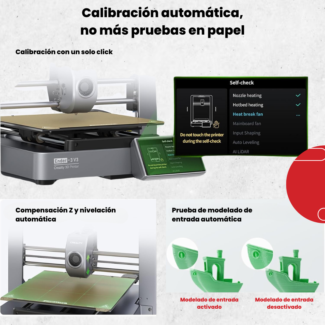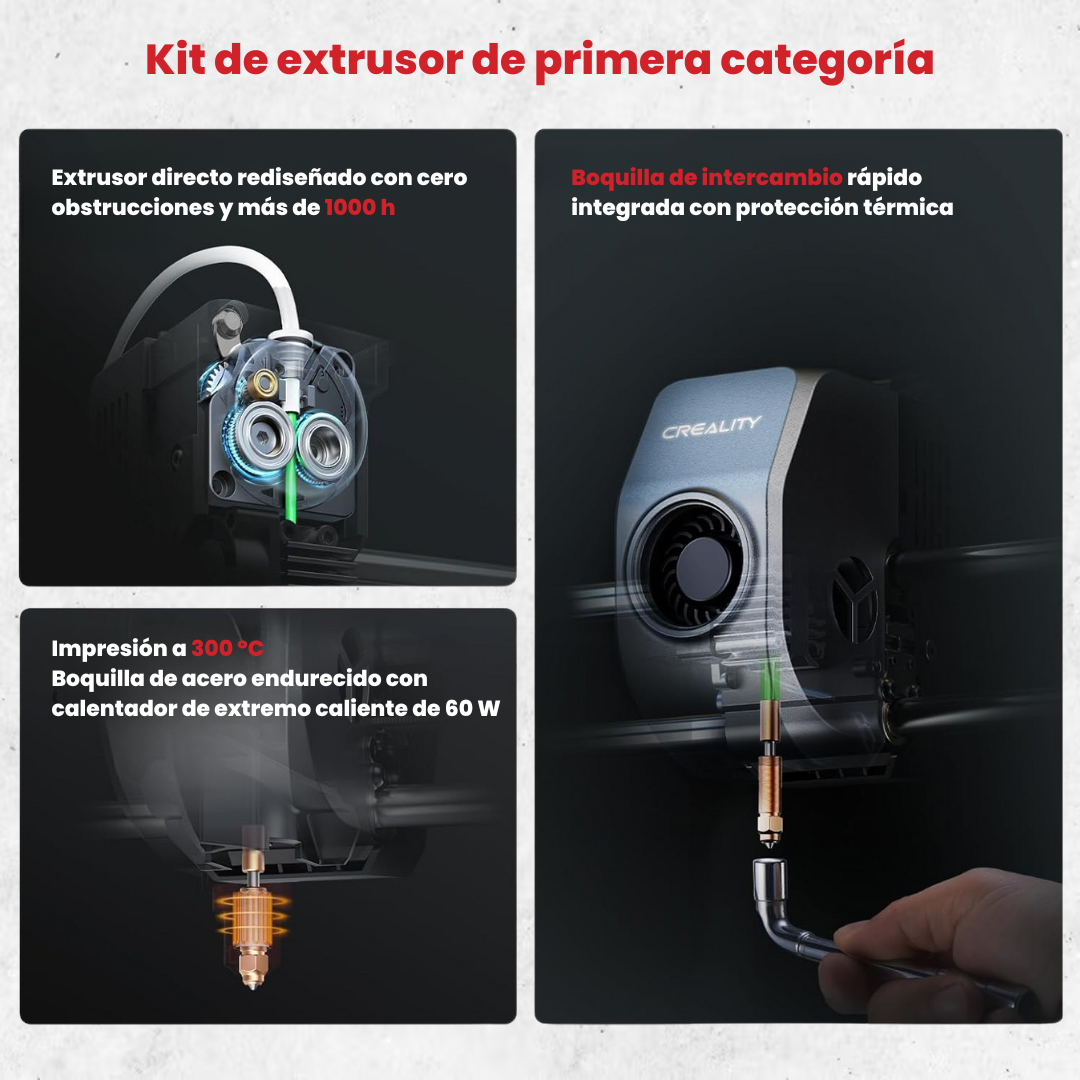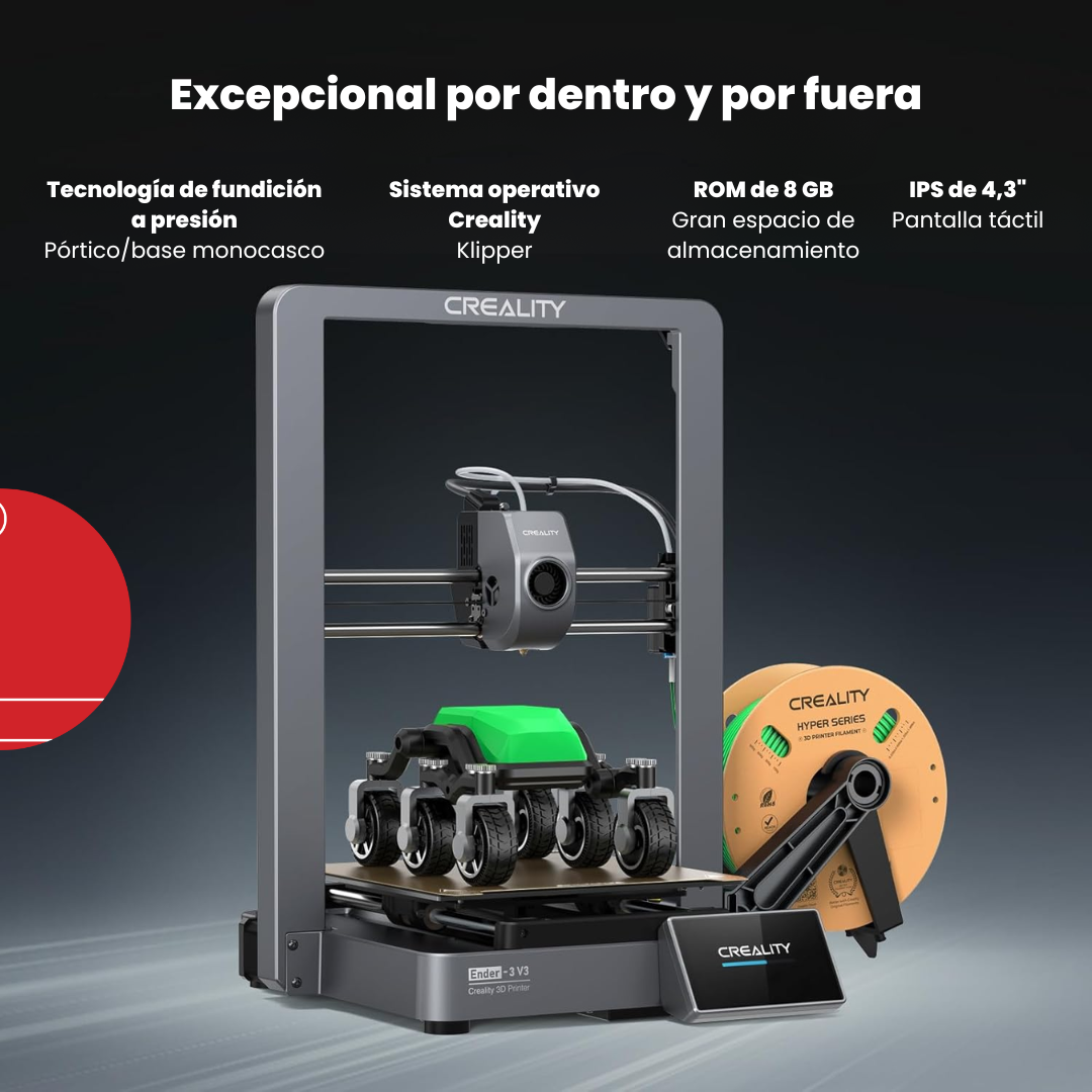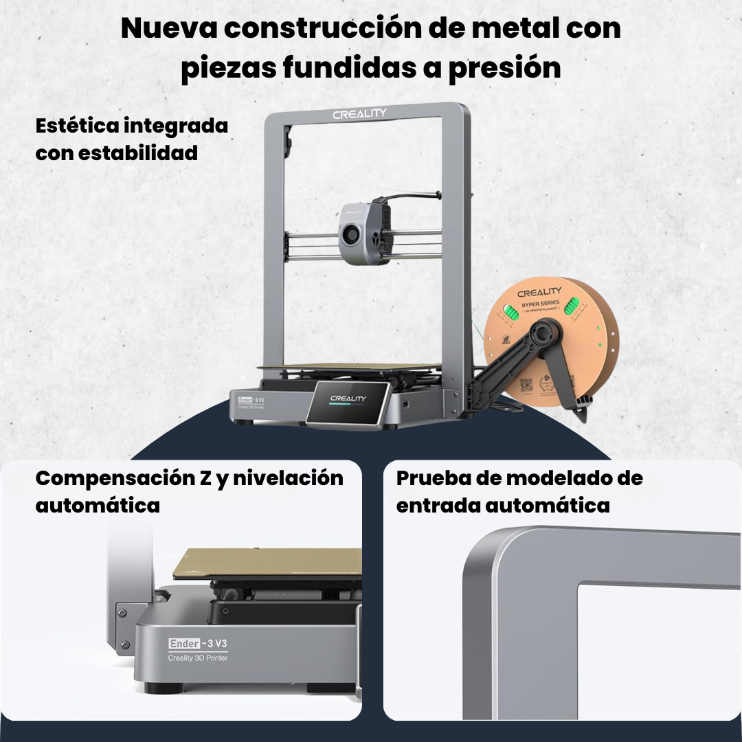 La Ender-3 V3 Plus combina gran volumen de impresión, altísima velocidad y precisión profesional, ideal para usuarios que buscan producir piezas grandes o en serie sin sacrificar calidad. Su sistema de movimiento Core XZ, extrusor Direct Drive, hotend de 60W y estructura reforzada garantizan impresiones rápidas, estables y confiables.