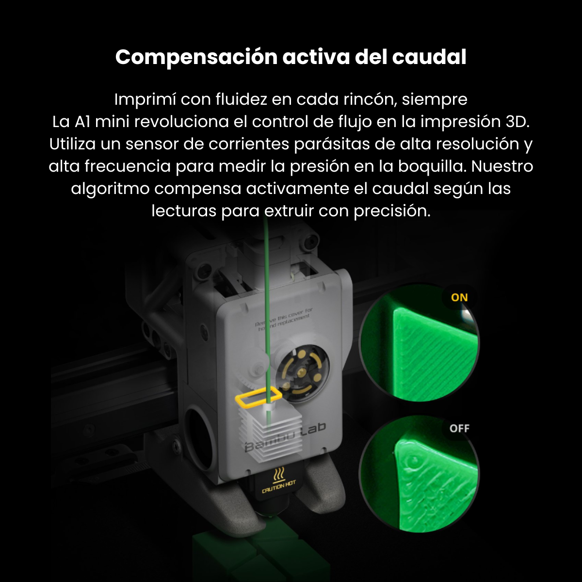 La A1 Mini de Bambu Lab es una impresora 3D compacta y poderosa, pensada para ofrecer una experiencia completamente automatizada y resultados profesionales desde el primer uso. Incorpora calibración automática completa, compensación activa de flujo y un sistema avanzado de control de movimiento que permite imprimir a gran velocidad sin perder calidad.